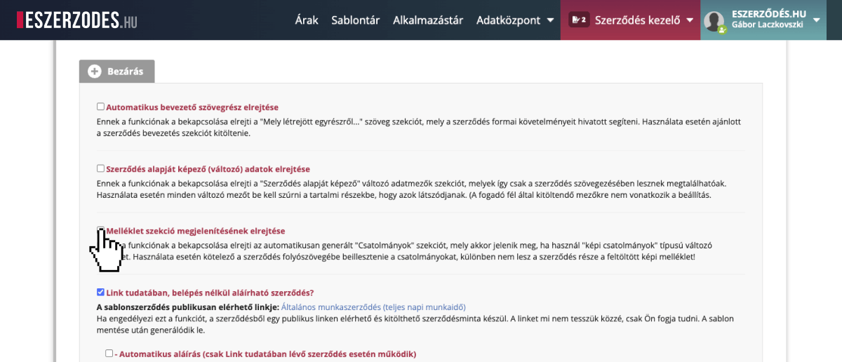 Hide attachments section Hides the “Attachments” block when image attachments are used; images must then be inserted directly into the contract text.