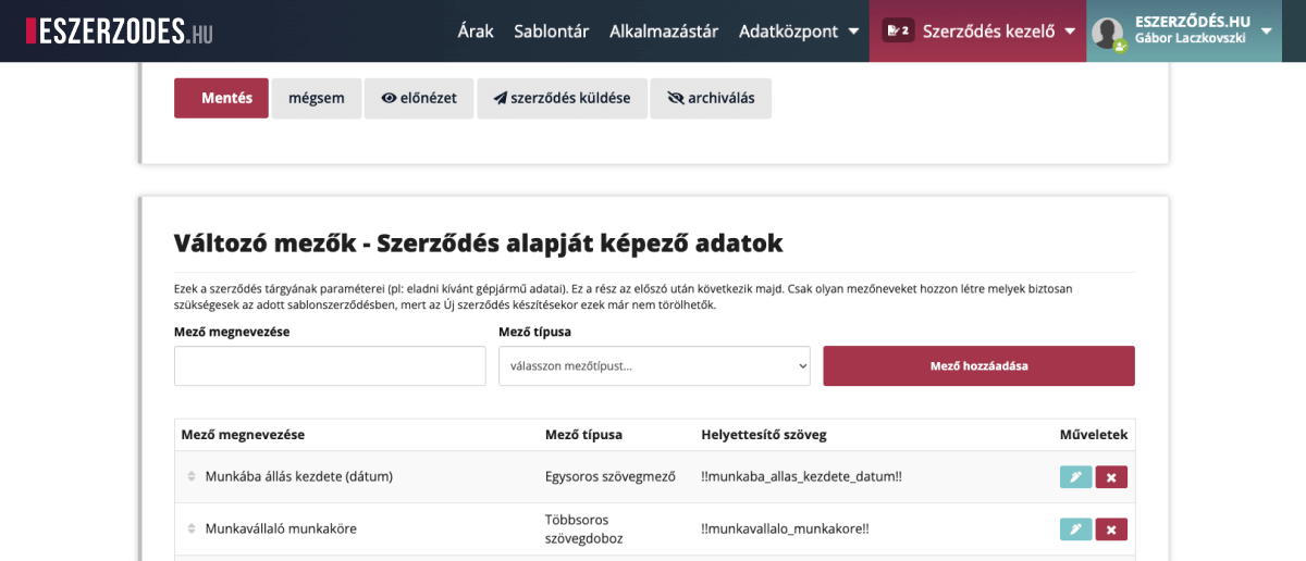 The system automatically manages basic sender and recipient data such as company name and tax number, so you don’t need to create these separately. Simply select the appropriate variable field, and the system will handle the accurate automatic filling.
